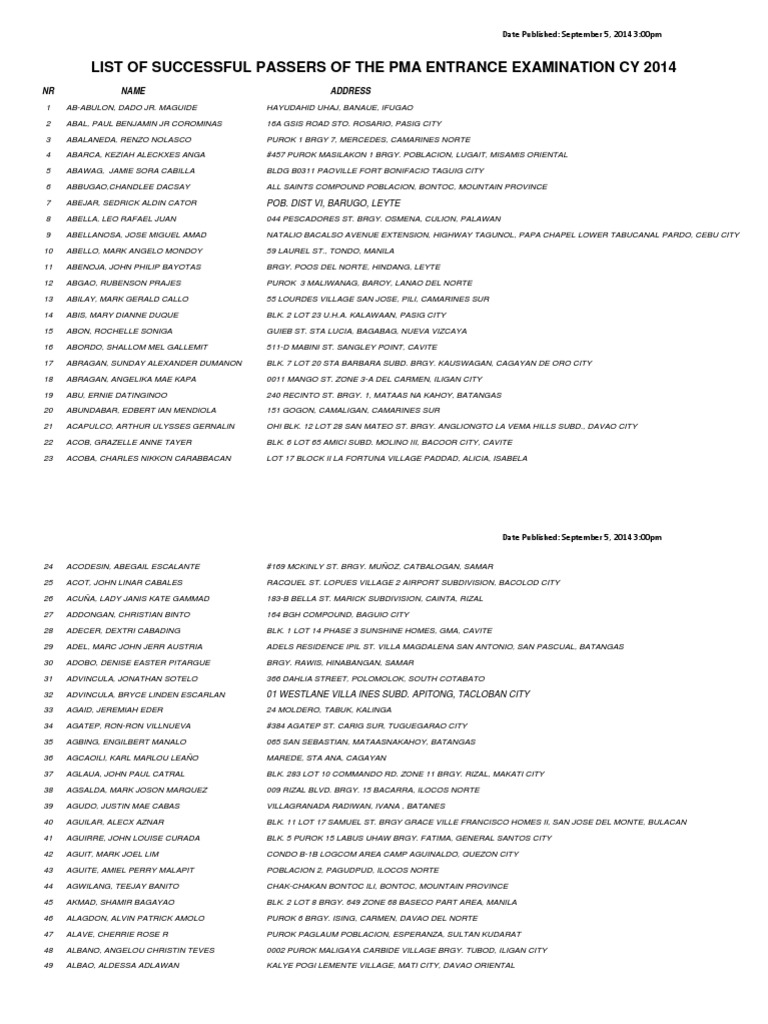 PMA entrance exam set on Aug 25 | Philippine Information ... from files.pia.gov.ph The application will officially open on may 01, 2021. The official list of pma entrance exam 2017 passers is finally out. Opt for the exam centre from the list available (the exam centre code is. This video shows what to expect in apply for pma entrance exam. If you want challenge in your life, take the pma entrance exam. Pma entrance exam 2020 schedule. By the way, the coverage of pma entrance exam is not that far from a typical college entrance exam that you usually take before. Information on courses, entrance exams after 12th for engineering, medical, hotel management, design law, mba, defence, b.arch, bsc nursing, bjmc etc.